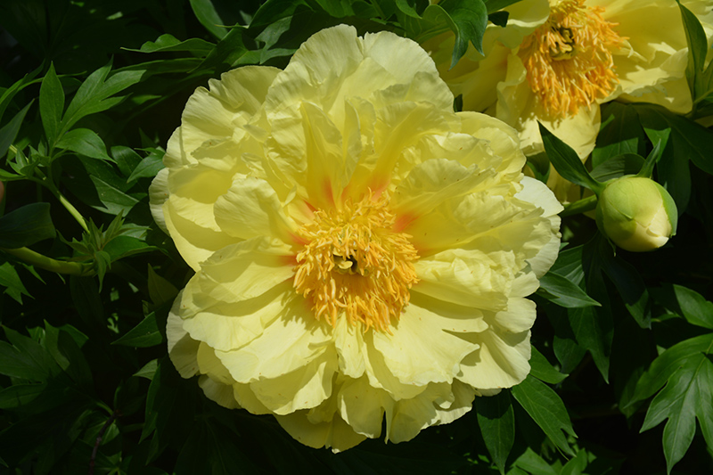 Sequestered Sunshine Itoh Peony features bold lightly-scented semi-double yellow flowers at the ends of the stems in late spring. The flowers are excellent for cutting. Its compound leaves remain green in color throughout the season.