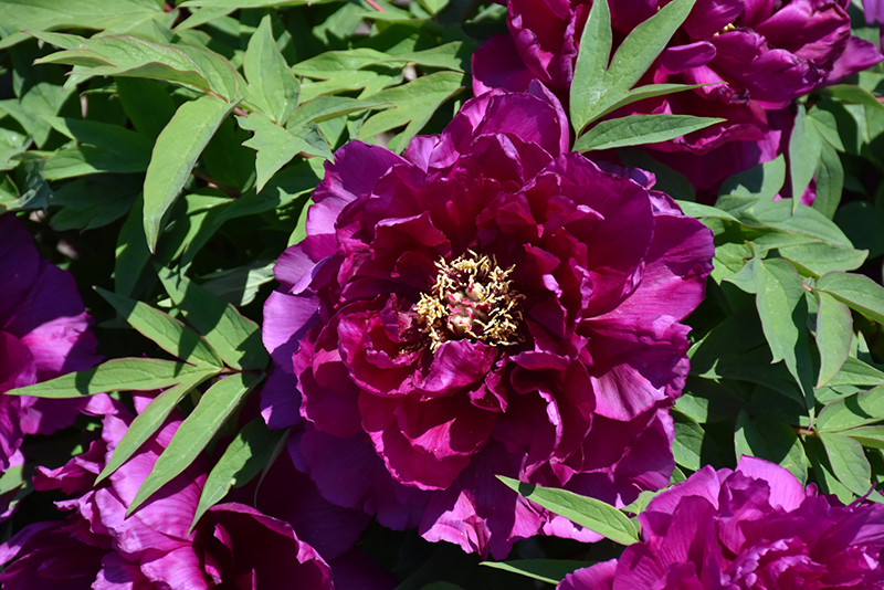 Purple Tree Peony is a multi-stemmed deciduous shrub with an upright spreading habit of growth. Its relatively fine texture sets it apart from other landscape plants with less refined foliage.