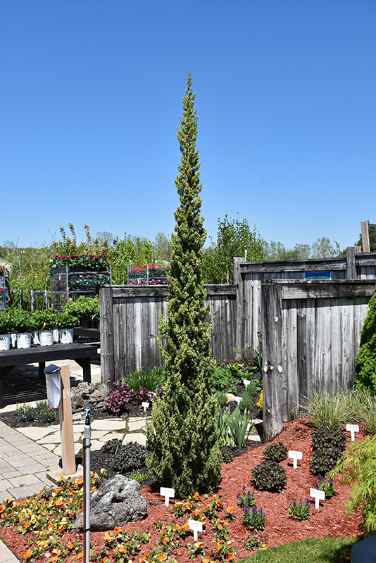 A narrow columnar evergreen shrub, makes a great accent or articulation plant in home landscapes; interesting blue-green needle-like foliage and extraordinary, large silver-blue berries; a very versatile landscape plant, needs full sun