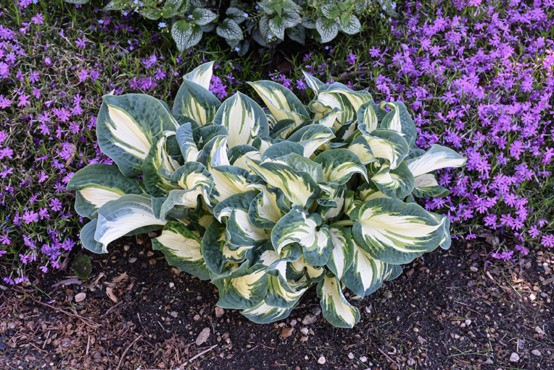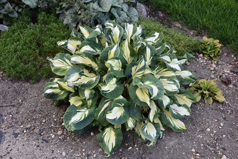 Hans Hosta will grow to be about 21 inches tall at maturity, with a spread of 32 inches. When grown in masses or used as a bedding plant, individual plants should be spaced approximately 28 inches apart. Its foliage tends to remain dense right to the ground, not requiring facer plants in front. It grows at a slow rate, and under ideal conditions can be expected to live for approximately 10 years. As an herbaceous perennial, this plant will usually die back to the crown each winter, and will regrow from the base each spring. Be careful not to disturb the crown in late winter when it may not be readily seen!
