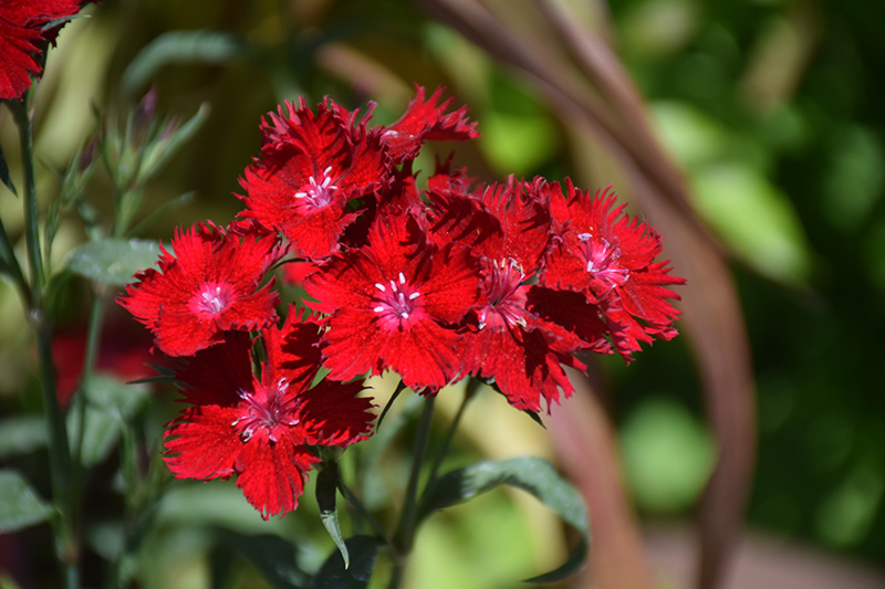 Rockin'™ Red Pinks is smothered in stunning fragrant red frilly flowers with pink eyes at the ends of the stems from late spring to mid fall. The flowers are excellent for cutting. Its glossy narrow leaves remain dark green in color throughout the year.
