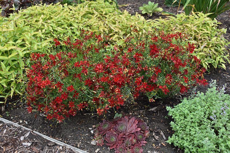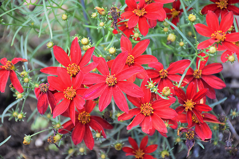 Sizzle & Spice® Hot Paprika Tickseed is smothered in stunning dark red daisy flowers with gold anthers at the ends of the stems from early to late summer. The flowers are excellent for cutting. Its threadlike leaves remain bluish-green in color throughout the season.