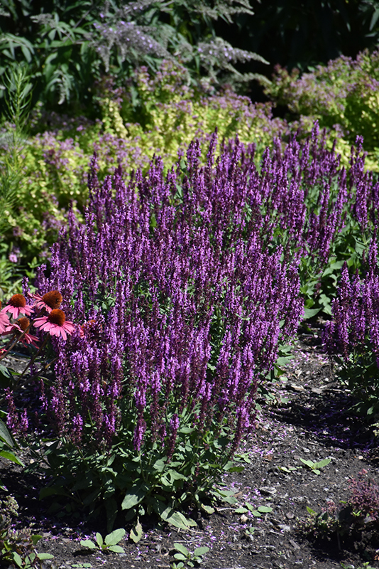 Pink Profusion Meadow Sage is an herbaceous perennial with an upright spreading habit of growth. Its relatively fine texture sets it apart from other garden plants with less refined foliage.