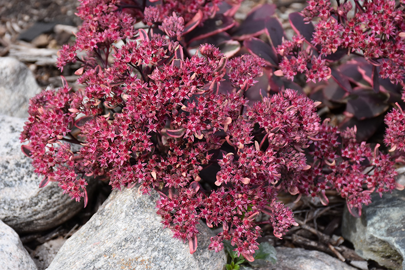SunSparkler® Dream Dazzler Stonecrop is covered in stunning panicles of fuchsia flowers with pink overtones rising above the foliage from early to mid fall. The flowers are excellent for cutting. Its attractive succulent round leaves emerge bluish-green in spring, turning deep purple in color with distinctive hot pink edges and tinges of white throughout the season. The burgundy stems are very colorful and add to the overall interest of the plant.