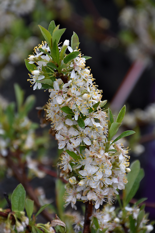 Jade Parade® Sandcherry is clothed in stunning clusters of fragrant white star-shaped flowers along the branches in mid spring before the leaves. It has bluish-green foliage with silver undersides. The glossy pointy leaves turn outstanding shades of yellow, orange and red in the fall. The fruits are showy burgundy drupes with black overtones, which are displayed in mid summer.