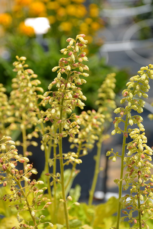 Creamy white bell flowers rise above low growing, compact mounds of heavily ruffled, chartreuse leaves; thrives in partial shade but can tolerate full shade; excellent for borders, beds and containers