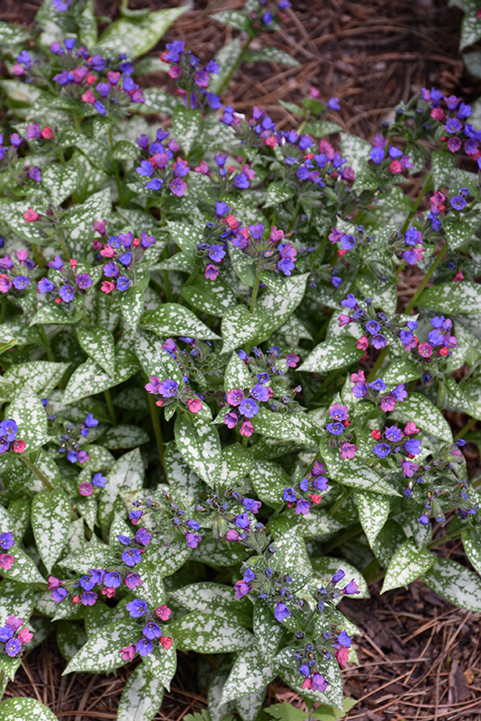 Spot On Lungwort will grow to be about 14 inches tall at maturity, with a spread of 20 inches. When grown in masses or used as a bedding plant, individual plants should be spaced approximately 20 inches apart. Its foliage tends to remain dense right to the ground, not requiring facer plants in front. It grows at a medium rate, and under ideal conditions can be expected to live for approximately 10 years. As an herbaceous perennial, this plant will usually die back to the crown each winter, and will regrow from the base each spring. Be careful not to disturb the crown in late winter when it may not be readily seen!