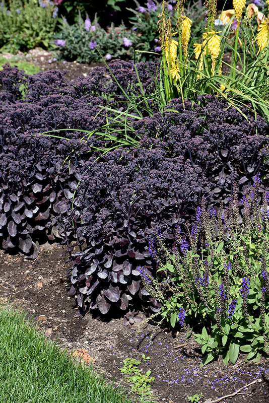 Rock 'N Grow® Midnight Velvet Stonecrop will grow to be about 18 inches tall at maturity extending to 26 inches tall with the flowers, with a spread of 32 inches. When grown in masses or used as a bedding plant, individual plants should be spaced approximately 30 inches apart. It grows at a fast rate, and under ideal conditions can be expected to live for approximately 15 years. As an herbaceous perennial, this plant will usually die back to the crown each winter, and will regrow from the base each spring. Be careful not to disturb the crown in late winter when it may not be readily seen!