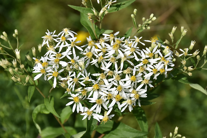 Bigleaf Aster has masses of beautiful white flat-top daisy flowers with violet overtones and gold eyes at the ends of the stems from early summer to mid fall, which are most effective when planted in groupings. Its large serrated heart-shaped leaves remain light green in color throughout the season.