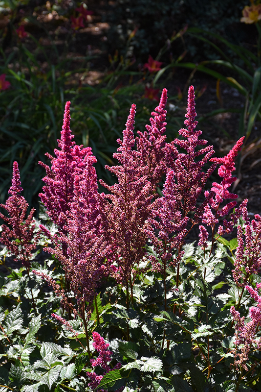 A low maintenance, shade loving variety, featuring tall, upright plants; bright pink plumes rise above mounds of ferny, toothed foliage; an excellent addition to shaded gardens, borders, containers or fresh-cut bouquets; low maintenance