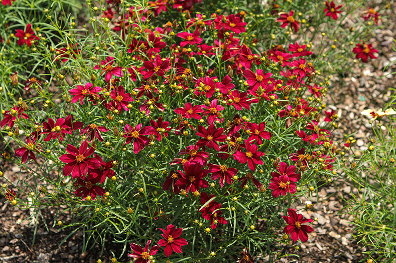 Designer Threads™ Scarlet Ribbons Tickseed is smothered in stunning burgundy daisy flowers at the ends of the stems from mid to late summer. The flowers are excellent for cutting. Its threadlike leaves remain emerald green in color throughout the season.