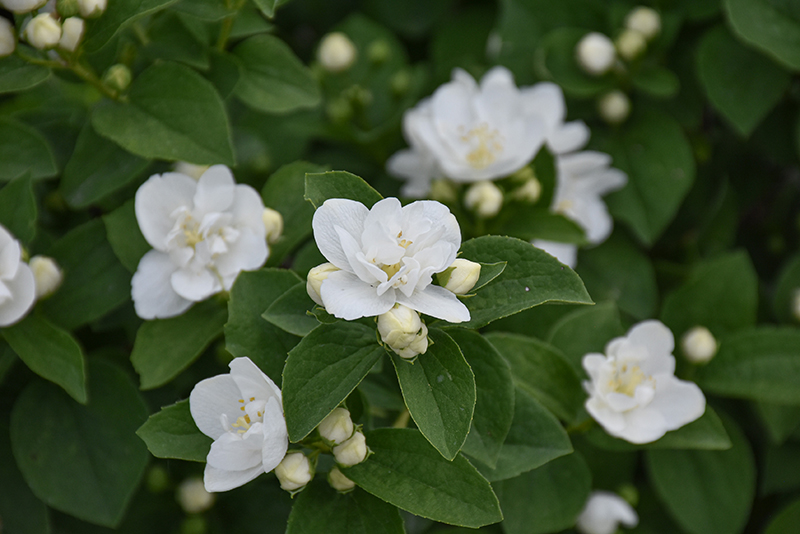 Illuminati Arch® Mockorange is clothed in stunning clusters of fragrant white flowers with buttery yellow anthers at the ends of the branches from late spring to early summer. The flowers are excellent for cutting. It has dark green deciduous foliage. The serrated pointy leaves do not develop any appreciable fall color.