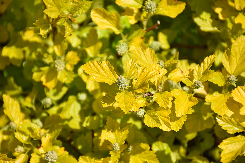 Honeycomb® Ninebark features showy clusters of white flowers at the ends of the branches in late spring. It has chartreuse foliage with hints of yellow. The small serrated lobed leaves turn an outstanding gold in the fall. The peeling tan bark adds an interesting dimension to the landscape.