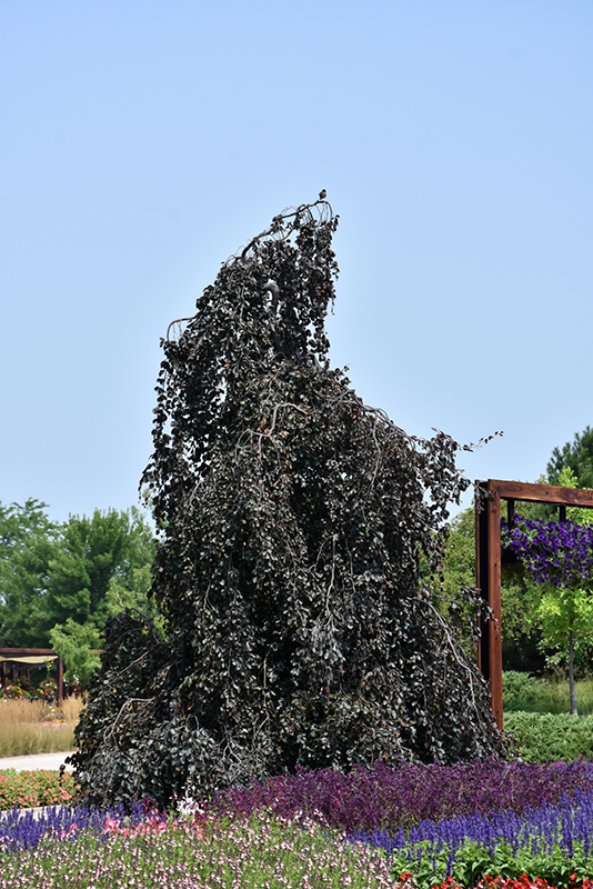 Purple Fountain Beech will grow to be about 30 feet tall at maturity, with a spread of 15 feet. It has a high canopy with a typical clearance of 4 feet from the ground, and should not be planted underneath power lines. It grows at a slow rate, and under ideal conditions can be expected to live to a ripe old age of 120 years or more; think of this as a heritage tree for future generations!