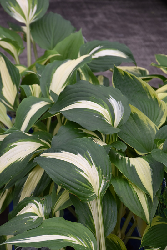 Night Before Christmas Hosta features dainty spikes of lavender tubular flowers rising above the foliage in mid summer. Its attractive large textured pointy leaves remain white in color with showy dark green variegation throughout the season.