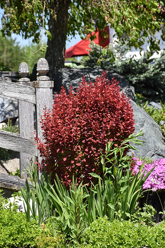 Orange Rocket Japanese Barberry will grow to be about 4 feet tall at maturity, with a spread of 24 inches. It tends to fill out right to the ground and therefore doesn't necessarily require facer plants in front. It grows at a fast rate, and under ideal conditions can be expected to live for approximately 20 years.